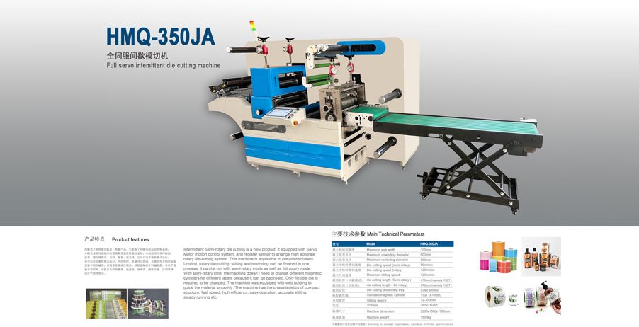 该机采用全伺服电机驱动、色彩跟踪系统、坚固耐用的结构设计,可使加工材料边缘干净利落,且标签两面均无损坏。